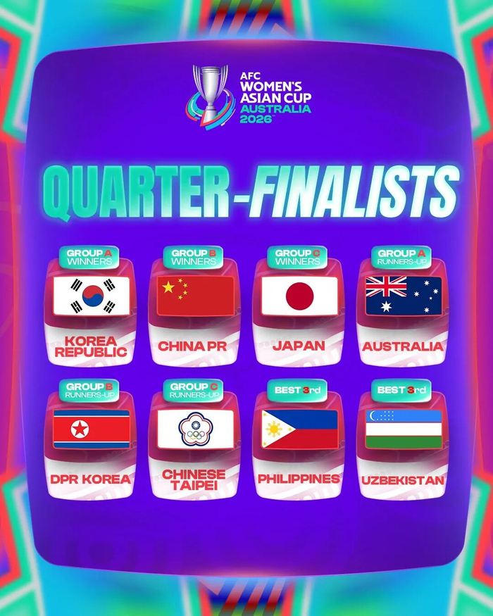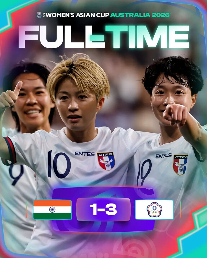 记者王伟报道 3月10日傍晚,2026年女足亚洲杯C组最后一轮,中国台北女足对阵印度女足。 最终,中国台北队以3比1战胜印度女足。 这场胜利让她们以小组第二的身份,进入亚洲杯八强。至此,女足亚洲杯八强落位,四分之一决赛中国女足将对阵中国台北女足,日本队将对阵菲律宾队,澳大利亚队对阵朝鲜队,韩国队对阵乌兹别克斯坦队。
